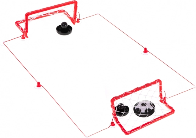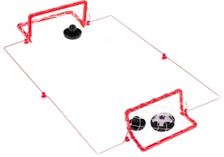 To mål, skubbere og en snor til optegning af banen forvandler ethvert bord til en arena for hurtige kampe i airhockey/fodbold.
