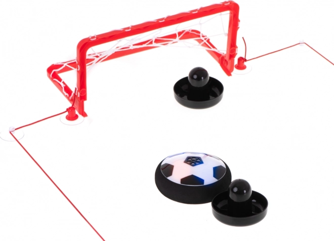 Gør klar til din egen minibane derhjemme på ingen tid. Takket være luftpuden bevæger bolden sig frit på bordets glatte overflade, og LED-lyseffekter giver endnu mere energi til spillet. Ideel til hurtige kampe og familieturneringer – underholdning for både børn og voksne uden behov for et specialbord.
