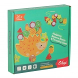 Det søde træpindsvin med farvede frugtklodser tilbyder to spil i ét: træning i at snøre frugter på en snor og balancerende stabling på pindsvinets ryg. Understøtter finmotorik, logisk tænkning og øje–hånd-koordination. Kvalitets glatpoleret træ og intense farver indbyder til lang og meningsfuld leg.