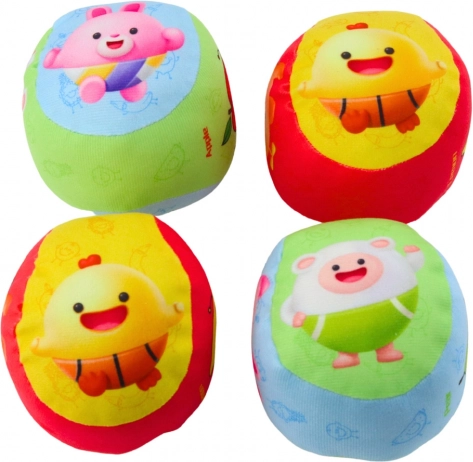 Sjovt sæt med fire farverige bolde til de mindste med glade frugtmotiver. Blødt og sikkert materiale er ideelt til de første kast, greb og rul. Let konstruktion skånsom for både børn og omgivelser samt støtte til udvikling af motorik og farvegenkendelse gør dette sæt til et godt valg til leg både inde og ude.