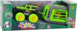 Den terrængående bil med bur og dinosaur er et fængende legetøj, der tager børn med ind i en verden af eventyr og forhistoriske ekspeditioner. Bilens design med store farverige hjul er klar til redningsmissioner eller dinosaurjagter. På bilens bagside er der et bur med en farligt udseende skabning, klar til sikker transport.