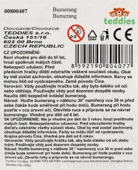Den lette skumboomerang er designet til nem kastning og sikker leg. Takket være den optimale form og lave vægt vender den godt tilbage og er et fremragende redskab til at udvikle motorik og kastens præcision. De farverige motiver fanger børns opmærksomhed og motiverer dem til at træne.