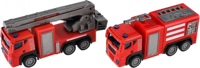 Disse detaljerede brandbiler bringer action og spænding ind i børns leg. Takket være pull-back-mekanismen kører de hurtigt afsted efter at blive sluppet, hvilket giver dynamisk og gentagende sjov kørsel. Realistiske elementer som stige, udskydbart arm og vandkanon understøtter rolleleg som brandmænd og udvikler fantasien.