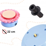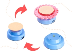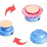 Sættet indeholder en farverig attråværdig drejeskive, der er beregnet til modellering af ler og dekoration.