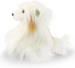Den lange hvide pels og det detaljerede ansigt giver indtryk af en levende lille hund. En skøn ledsager til kram og fantasifuld leg.
