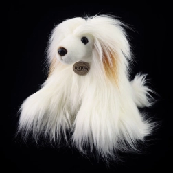 Denne plyshund efterligner trofast den kinesiske nøgenhund – powder puff med snehvid lang pels, en nuttet snude og udtryksfulde øjne. Takket være håndsyning og premium materialer er den ekstra behagelig at røre ved og holdbar til daglige kram.
