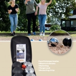 Æsken indeholder 6 metalkugler, en cochonnet og et målebånd – det er bare at pakke ud og spille med familie eller venner.