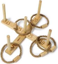 En sjov og enkel leg for hele familien: kast reb-ringe på de nummererede pinde og saml point. Fremstillet af kvalitetstræ med stabilt krydsformet understel, velegnet til have, strand og ferie. Certificeret FSC-træ understøtter bæredygtig produktion.