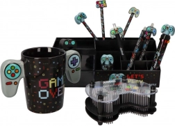 Sort keramik med farvet pixeltekst og ikoner giver dit bord en gaming-atmosfære og er perfekt som gave til gamere.