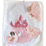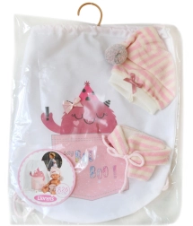 Dette elegante sæt består af to stykker tøj og en praktisk rygsæk, som giver dukken et moderne look. Fremstillet med omhu og kærlighed i Spanien, hvilket sikrer høj kvalitet og originalitet.