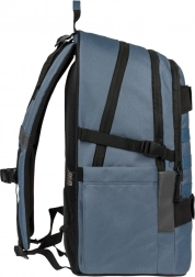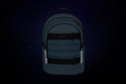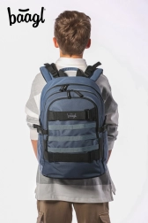 Skolerygsæk Skate Dust Blue: Let model med en vægt under 900 g, justerbare stropper til skateboard og anatomisk formede rygstøtter. Rygsækken er udstyret med tre separate rum, en polstret lomme til bærbar computer eller tablet op til 15 tommer, reflekselementer og pålidelige YKK-lynlåse.