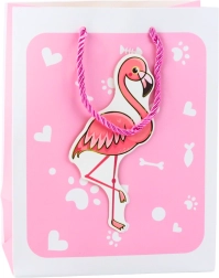 Denne farverige gavepose er den ideelle løsning til indpakning af gaven til et barn eller for enhver, der elsker søde og eventyrlige mønstre. Posen er lavet af kvalitets papir, hvilket giver den holdbarhed og et æstetisk udseende. Hver pose er dekoreret med muntre tredimensionelle (3D) dyremotiver som flamingo, delfin, isbjørn og får, omgivet af farverige baggrunde med søde hjerter og poter.