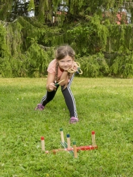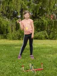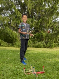Takket være det robuste træ og de lette ringe er spillet ideelt for både børn og voksne. Det er let at transportere og hurtigt at gøre klar til leg på græsplænen, i haven, i parken eller på ferien.