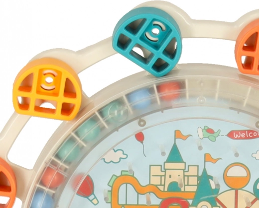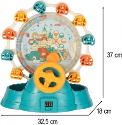 Dette fantastiske pariserhjul er udstyret med rat og en rutsjebane til bolde, hvilket er en fremragende kombination til sjov og aktiv leg. Børn kan udvikle deres motoriske færdigheder ved at indsætte og gribe bolde, mens lys- og lydeffekter giver en ekstra dimension af underholdning.