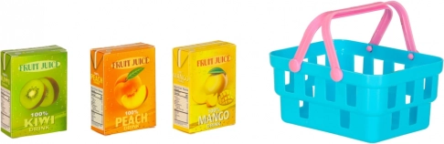 - Komplet sæt til rolleleg: kurv, frugt, juicer, små flasker, shakerglas, underlag.