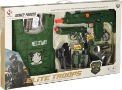 Det ultimative militære sæt for små eventyrere, der inkluderer en vest, en riffel, en kikkert og andet tilbehør til realistisk leg og masser af sjov.
