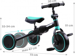 Alsidig 3i1 børnecykel Tiny Bike, der vokser med barnet: du forvandler den nemt til en trehjulet cykel, en løbecykel eller en balancecykel uden værktøj. Den har en let og holdbar ramme, brede hjul for stabilitet, justerbart sæde og behagelige, skridsikre håndtag. Perfekt til at udvikle balance, koordination og selvtillid på cyklen.