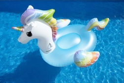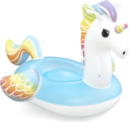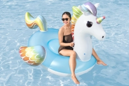 Med den oppustelige enhjørning fra Bestway nyder du hvert øjeblik på vandet. Takket være dens stabilitet og store dimensioner er den velegnet ikke kun til voksne, men også til børn. Enhjørningen er beskyttet mod skader med en reparationslap og bliver til sidst en favoritdekoration til enhver poolfest.