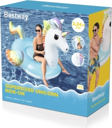 Gør dig klar til sommerens sjov med Bestways oppustelige enhjørning i XXL! Med målene 224 x 164 cm er den ideel til afslapning på vandet. Solide håndtag og højkvalitets vinylmateriale sikrer komfort og sikkerhed.