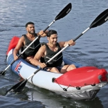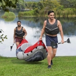 Tag på vandet med den to-personers oppustelige kajak Bestway, den ideelle ledsager til rekreative udflugter på søer eller pools. Denne kajak er lavet af holdbart vinylmateriale, der er modstandsdygtigt over for skader. Den rummelige og behagelige cockpit er udstyret med to oppustelige sæder med bløde ryglæn, hvilket sikrer komfort selv under lange ture.