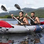 Pakken inkluderer også et par aluminiumpadle og en reparationslap til eventuelle uønskede skader eller huller. Denne kajak er det perfekte middel til afslapning på vandet, hvad enten du er alene eller med en ven.