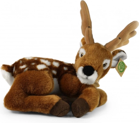 Dette plysdådyr fra RAPPA‑kollektionen imponerer med realistiske detaljer, bløde små gevirer og en fin pels med hvide pletter. Ideelt til kram, leg og som dekorativt indslag på børneværelset. Fyldet af genanvendte PET‑flasker er sikkert, føles som almindeligt fyld og er fuldt certificeret også til de mindste.