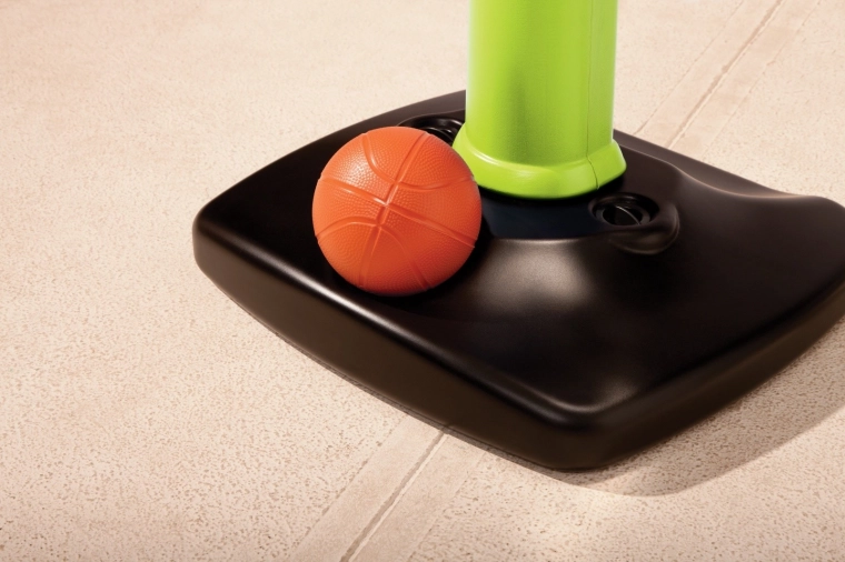 Den robuste base kan vægtes for maksimal stabilitet ved skud og dunk – ideel til brug både inde og ude.