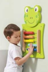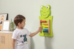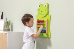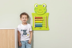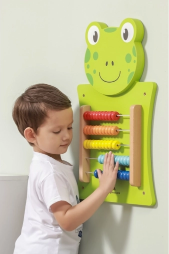 Denne frø-abacus kombinerer legende æstetik med praktisk læring. Fem vandrette stænger med farvede perler opmuntrer børn til at skubbe og tælle, hvorved de træner finmotorik, øje–hånd-koordination og logisk tænkning. Det vægmonterede design sparer plads og er altid lige ved hånden.