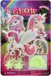 Et magisk sæt selvlysende enhjørninger forvandler børneværelset til et eventyrligt sted. Efter opladning lyser de blidt i mørket, skaber en beroligende atmosfære, støtter rolig indsovning og giver rummet et magisk præg. Nem at sætte på væg eller loft – en glæde for hvert barn.