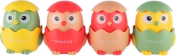 Tryk og kør! Den glade kylling i farverig “ægge”-frakke sætter i gang ved et tryk takket være den svinghjulsdrevne mekanisme. Legetøjet støtter udvikling af finmotorik, hånd-øje-koordination og børns naturlige nysgerrighed.