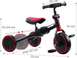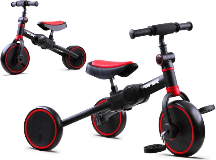 Tiny Bike 3-i-1 er et fremragende valg til de første skridt ind i cykelverdenen. Takket være den gennemtænkte konstruktion kan den nemt ombygges efter barnets alder og behov – fra et stabilt køretøj til de mindste, over en trehjulet cykel med pedaler, til en balancecykel til træning af balancen. Ombygningerne klares uden værktøj på få minutter.