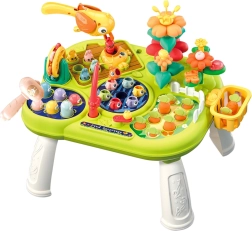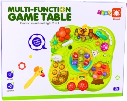 Bordet tilbyder forskellige funktioner, der stimulerer nysgerrighed og opfordrer til eksperimenter. Det indeholder spil som "fang muldvarpen", interaktive knapper, farverige blomster, roterende elementer, stænger og gear. Det hjælper børnene med at forstå årsag og virkning, lærer dem præcise finger- og håndbevægelser. Det er derfor ikke kun en kilde til sjov, men også en støtte til naturlig kognitiv og manuel udvikling.