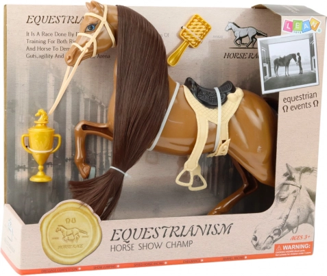 En realistisk udformet hest med en smuk, blød manke, som kan børstes og arrangeres efter eget ønske, tilbyder kreativ og engagerende leg, der udvikler fantasi og finmotorik. Tilbehør som sadel, trense og gylden pokal opfordrer børn til at skabe deres egne scenarier og giver legen større autenticitet.