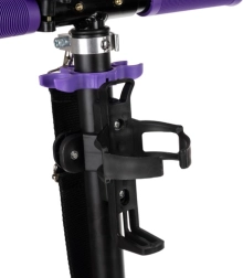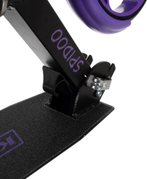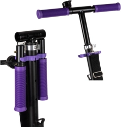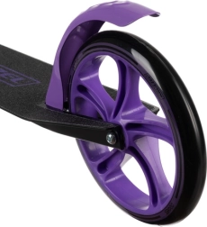 Denne sort‑lilla scooter er et glimrende valg til børn fra 8 år og ældre brugere, der ønsker bekvemme og sikre byture. De store 200 mm hjul dæmper ujævnheder og giver stabilitet, mens det skridsikre trinbræt og den pålidelige fodbremse giver kontrol i enhver situation. Foldemekanismen og den justerbare rem gør transport og opbevaring let.