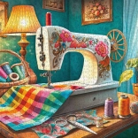 Fantastisk puslespil med tema af et syhjørne, der underholder hele familien. Ideelt for elskere af syning og puslespil.