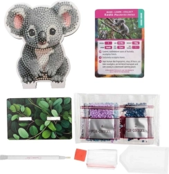 Denne kreative hobby kræver omhu og tålmodighed, men belønningen er et smukt billede, som du stolt kan vise frem. Pakken indeholder en træplade formet som en koala med et fortrykt motiv, en træstand, applikationspen, bakke, klæbevoks og et sæt farvede sten.