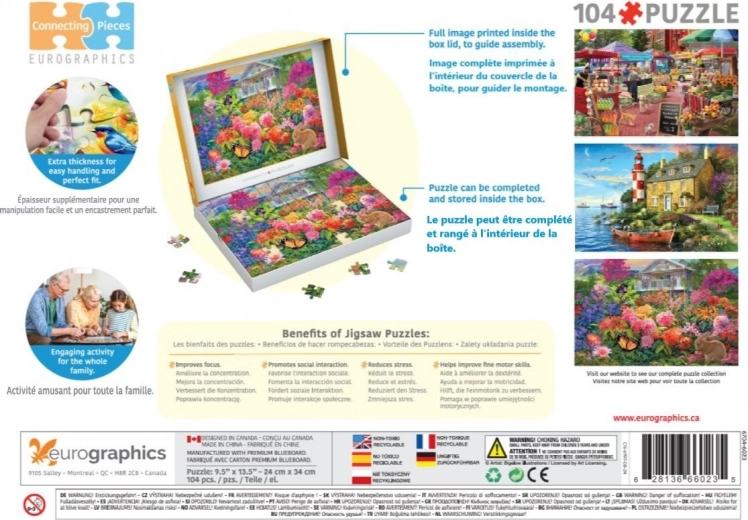 Det trykte billede på indersiden af låget gør det nemmere at samle puslespillet og hjælper med at finde de rigtige brikker. Målene på det færdigsamlede puslespil er 35,6 x 25,4 cm, hvilket er en perfekt størrelse for alle puslespilsentusiaster.