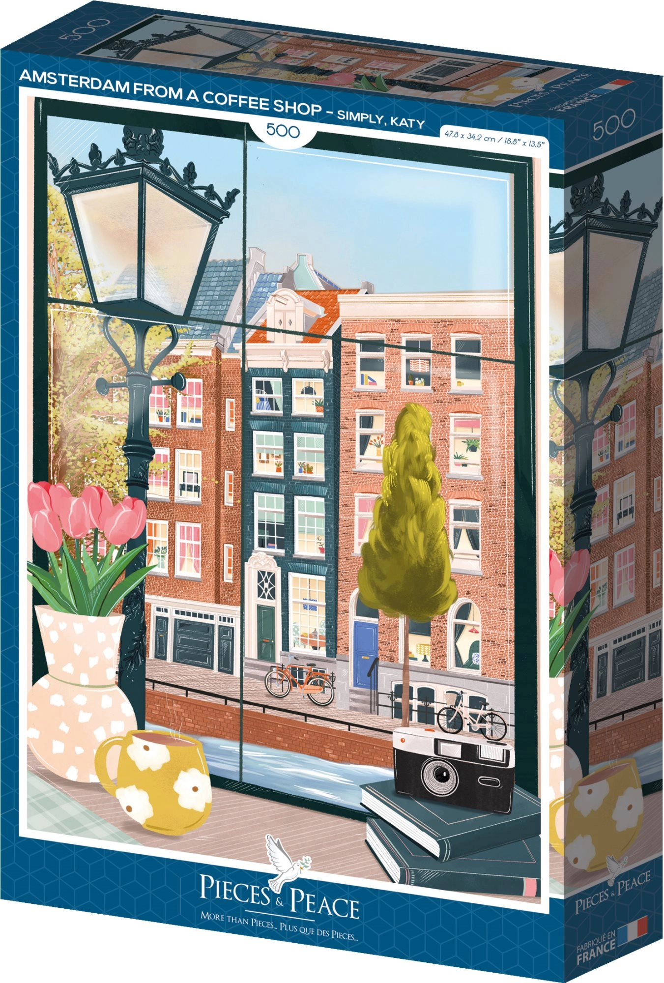 Udforsk det maleriske syn på en af Europas smukkeste byer med dette detaljerede puslespil. Det færdiglagte puslespil giver en betagende udsigt over Amsterdam fra en café, hvilket gør det til et fantastisk supplement til enhver hjemme-samling af puslespil.
