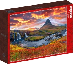Puslespil Kirkjufellsfoss Vandfald transporterer dig til et magisk sted på Island, hvor det kaskadende vandfald fremviser sin naturlige skønhed. Det elegante design og de trofaste farver giver en livlig oplevelse af farver og detaljer.