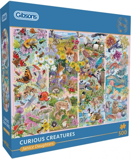Puslespil Nysgerrige skabninger - 500 brikker, størrelse 49x34 cm, god underholdning for hele familien.