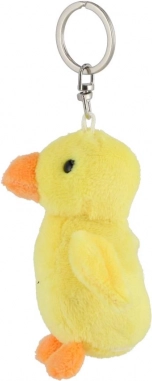 Sød ande-nøglering af blød plys med metalring og karabin, perfekt som nøglering eller pynt til rygsæk eller håndtaske. Takket være de kompakte mål 4 × 8 cm er den let, behagelig at røre ved og altid lige ved hånden – en skøn lille gave til både børn og plys-elskere.
