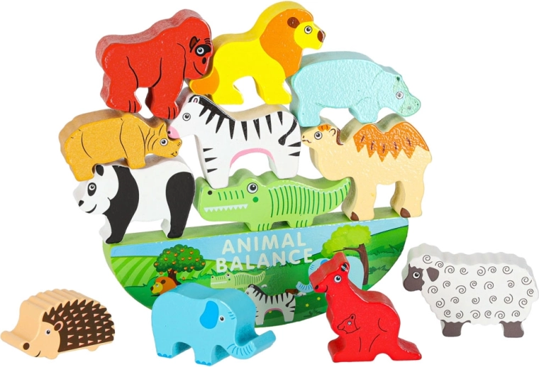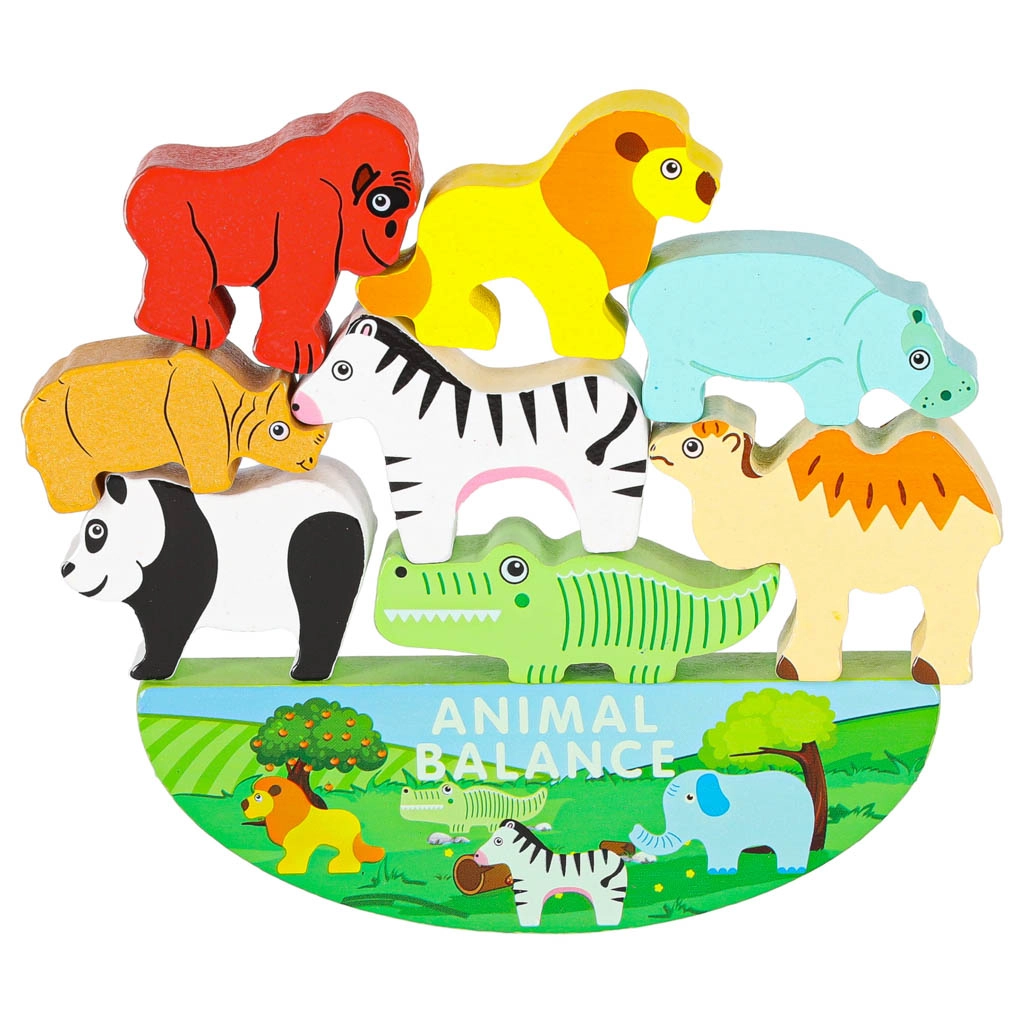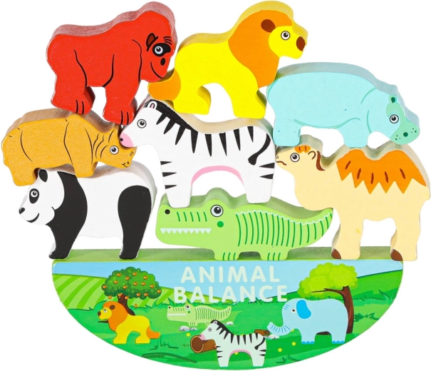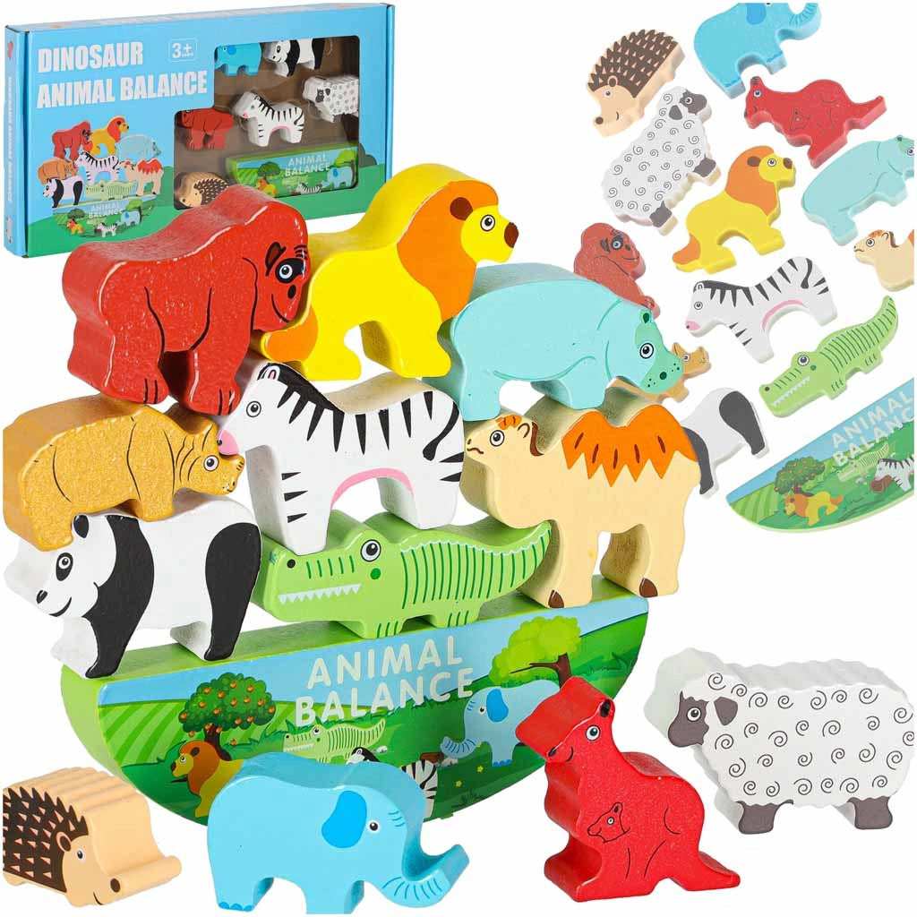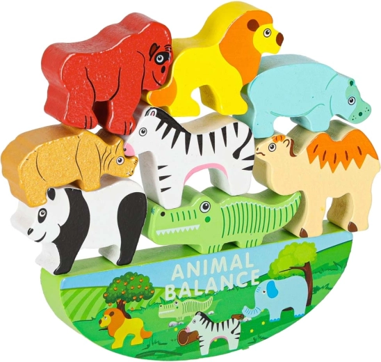 Denne farverige træ-balanceleg begejstrer hvert barn. Opgaven er at lægge dyrene oven på hinanden og finde stabile kombinationer på den gyngende base. Undervejs træner børn finmotorik, tålmodighed og logisk tænkning, mens de udforsker former og farver på safaridyrene.