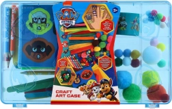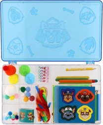 Den gennemsigtige boks med præget PAW PATROL-logo opbevarer alle materialer sikkert. Takket være de opdelte rum forbliver alt organiseret og klar til kreativitet derhjemme og på farten.