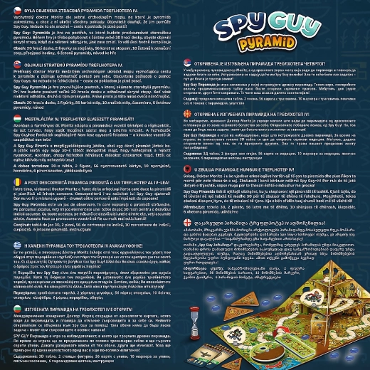Eventyret kalder! Den forsvundne pyramide tilhørende Treflhotep IV gemmer på sjældne skatte, men den snu doktor Moritz har kortet og er et skridt foran. Stol på den snarrådige helt Spy Guy og følg sporene i en labyrint fuld af fælder. Mekanikken med bevægelige dele på 3D-pladen giver en original spiloplevelse, der tester observation, hurtige beslutninger og samarbejde.