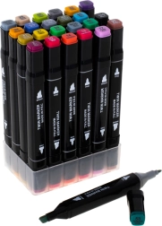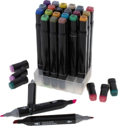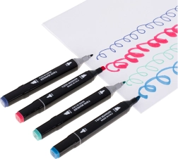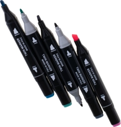 Hver tusch tilbyder en bred, skrå spids til udfyldning af store flader og en fin spids til præcise linjer og detaljer. Du skifter nemt mellem hurtig udfyldning og præcis streg.
