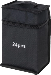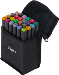 Det kompakte tekstiletui med lynlås og det plastiske stativ holder tuscherne pænt organiseret og altid lige ved hånden – perfekt til atelier, skole og rejser.