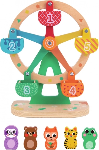 Nyd masser af sjov med karrusellen med dyr fra 2Kids Toys. Denne interaktive legeting lærer børn at genkende farver og tælle, fremstillet af kvalitets FSC®-certificeret træ.