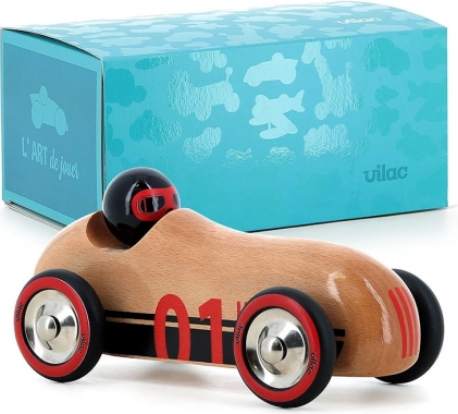 Old Sport træbilen fra Vilac er fremstillet af massivt bøgetræ, hvilket sikrer høj holdbarhed og kvalitet. Produktet er håndmalet med sikre farver ved en traditionel dyppeproces, som giver et unikt og æstetisk udtryk.