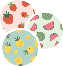 Sættet indeholder tre kufferter i forskellige størrelser, som nemt kan opbevares i hinanden. Hver kuffert er udsmykket med motiver af saftige frugter som vandmelon, ananas og jordbær, og tilfører charme til børnemiljøet.