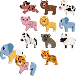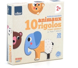 Sættet Vilac Sjove Dyr præsenterer ti dyr, hver sammensat af tre dele. Kombiner dem efter din fantasi for at skabe unikke og sjove dyrekombinationer - måske tigerhoved, kofar og elefantens hale. Med dette legetøjsæt er der ingen grænser for din skabelses- og fantasiverden.